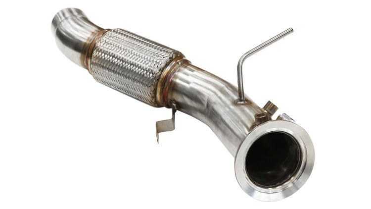 Downpipe firmy TurboWorks, wykonany ze stali nierdzewnej.